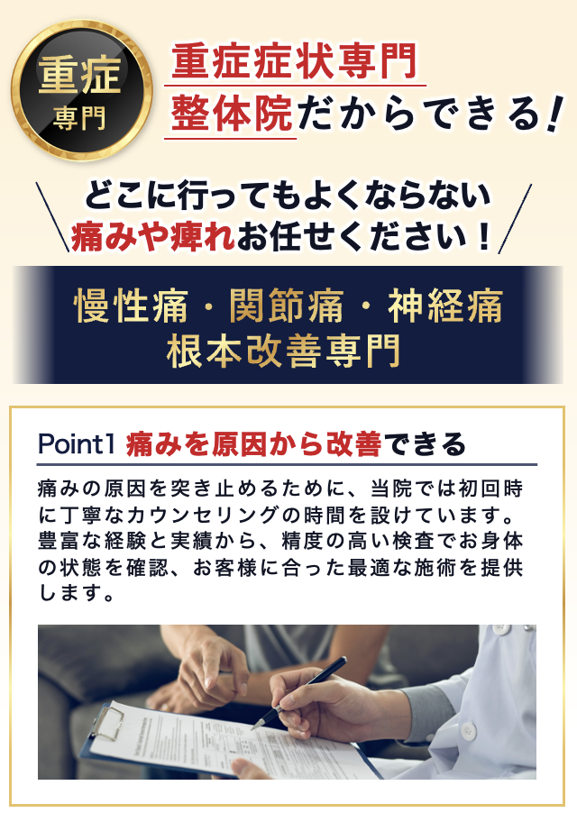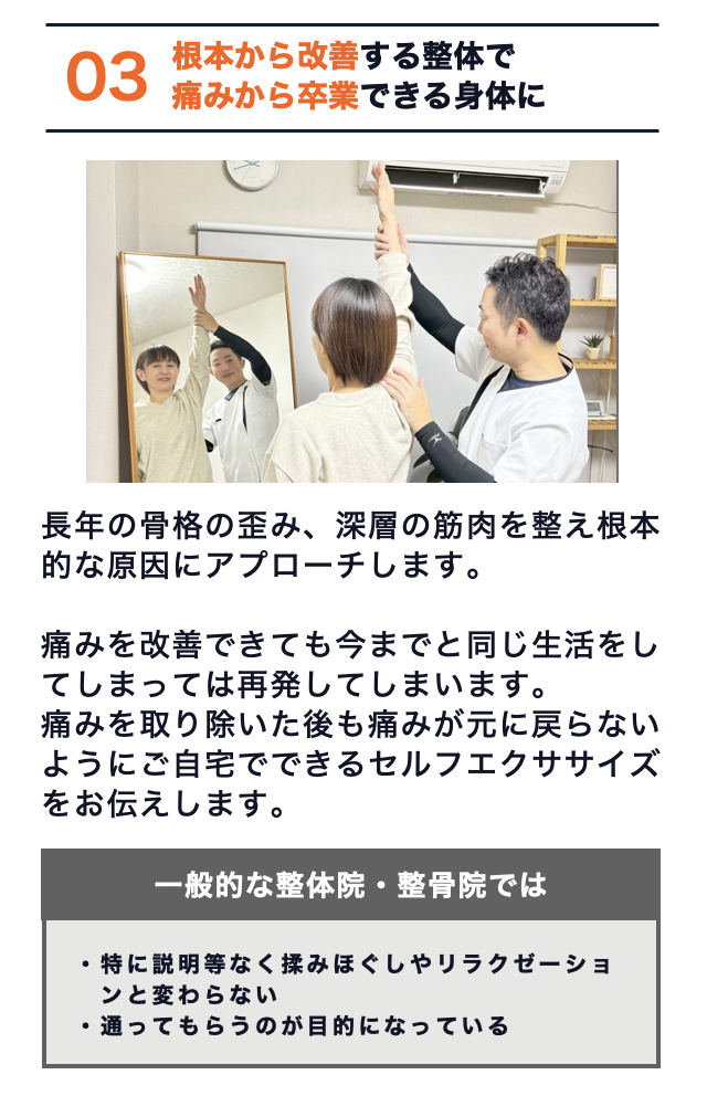 当院は何をしてもどこに行っても改善しない方の為の整体院です。