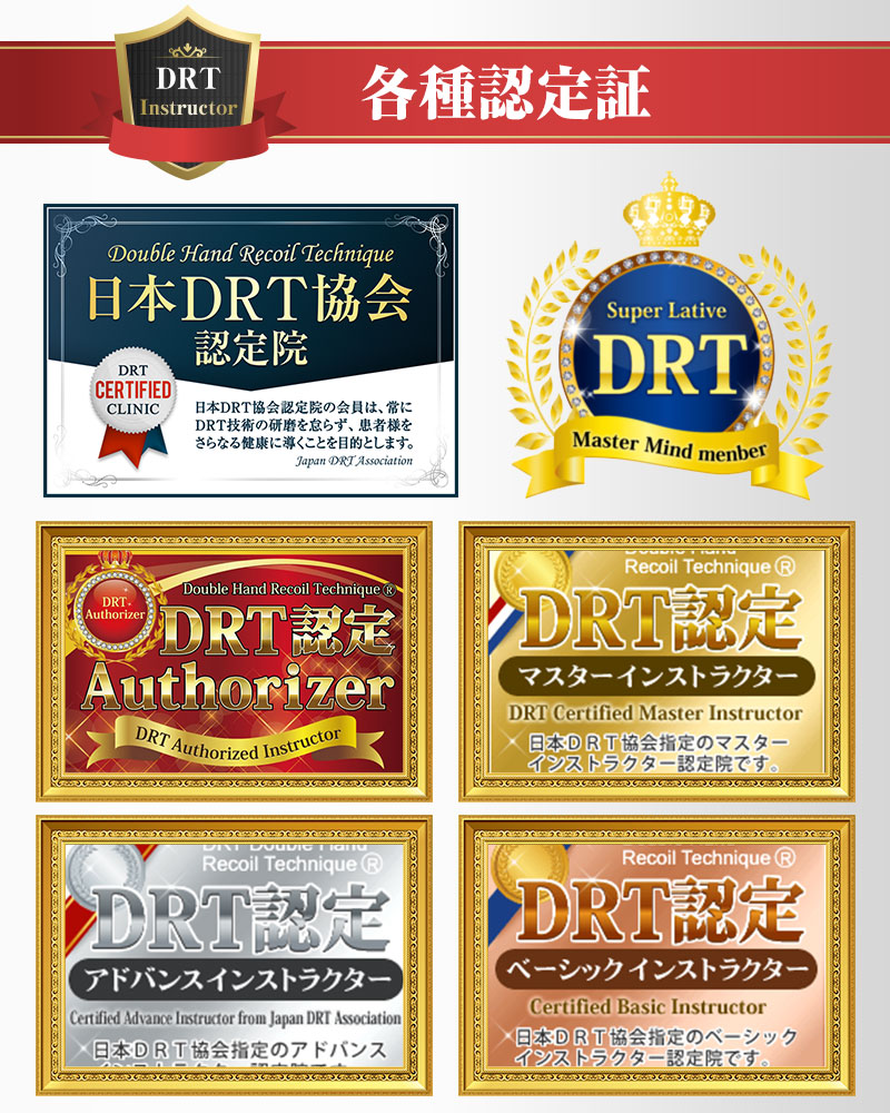 当店は、DRT整体を普及する日本DRT協会より認定を頂いておりますので、正式な施術を行うことが可能です。